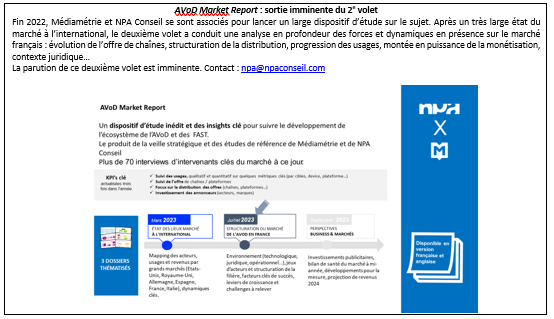 Alors qu’elles représentent déjà près de 3,5 % du « temps téléviseur » aux Etats-Unis (étude Nielsen the Gauge de mai 2023), l’AVoD et les FAST s’apprêtent à une double accélération de ce côté-ci de l’Atlantique. Côté contenu, d’abord, l’arrivée sur Samsung TV Plus de BFM TV et d’une dizaine d’autres chaînes Altice semble acquise pour le début de l’automne ; de leur côté, France Télévisions et Amazon négocient les conditions d’une arrivée du groupe public dans l’environnement du e-commerçant. Ces premiers ponts entre FAST et TNT vont prolonger et amplifier le mouvement de premiumisation de l’offre déjà engagé par les plateformes ; et l’onde de choc ne manquera pas de s’étendre aux autres leaders de l’audiovisuels ainsi qu’aux distributeurs, FAI en tête.